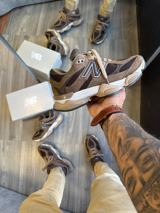 Tênis New Balance 9060 Sea Salt Marrom Militar Couro Legítimo
