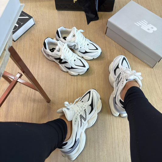 Tênis New Balance 9060 Sea Salt Branco e Preto Feminino Couro Legítimo