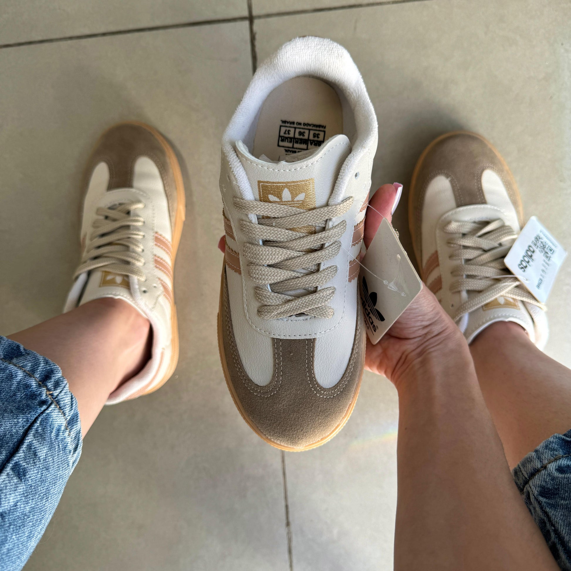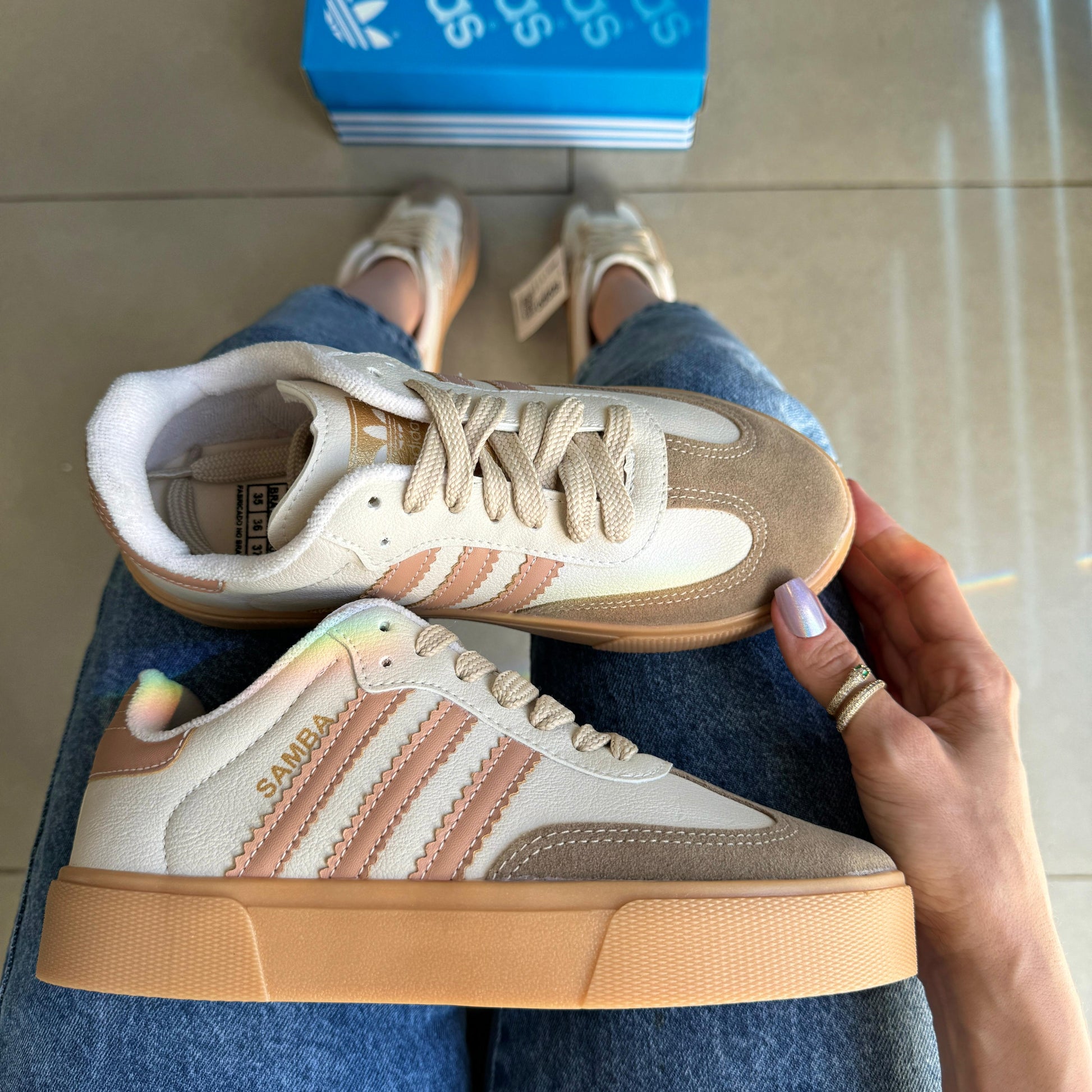 Equipado com cadarços 100% algodão, o Tênis Adidas Samba Off Rosado Premium garante um ajuste seguro e personalizado. Os cadarços são projetados para manter a durabilidade mesmo com o uso contínuo, mantendo o conforto e a praticidade no laçamento.