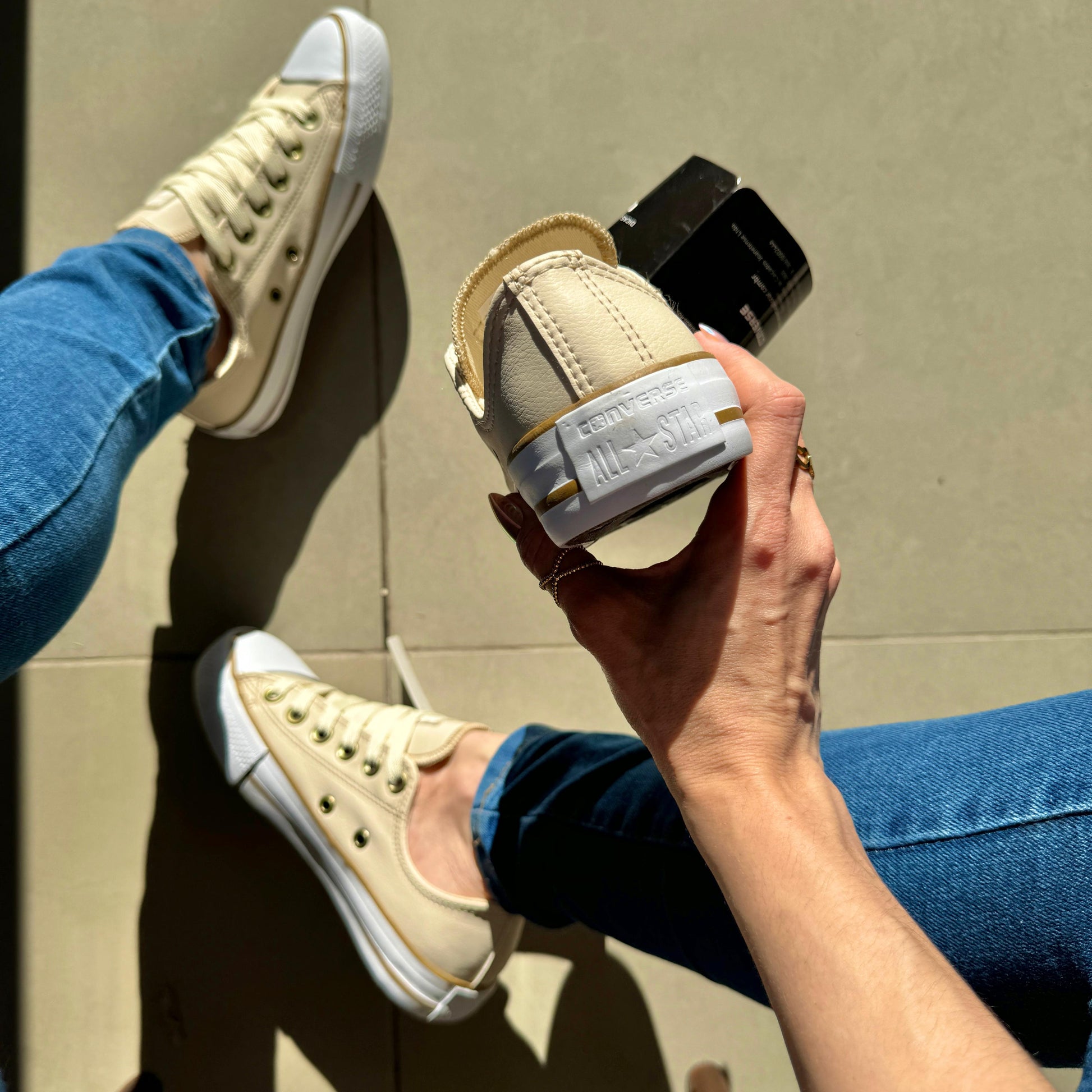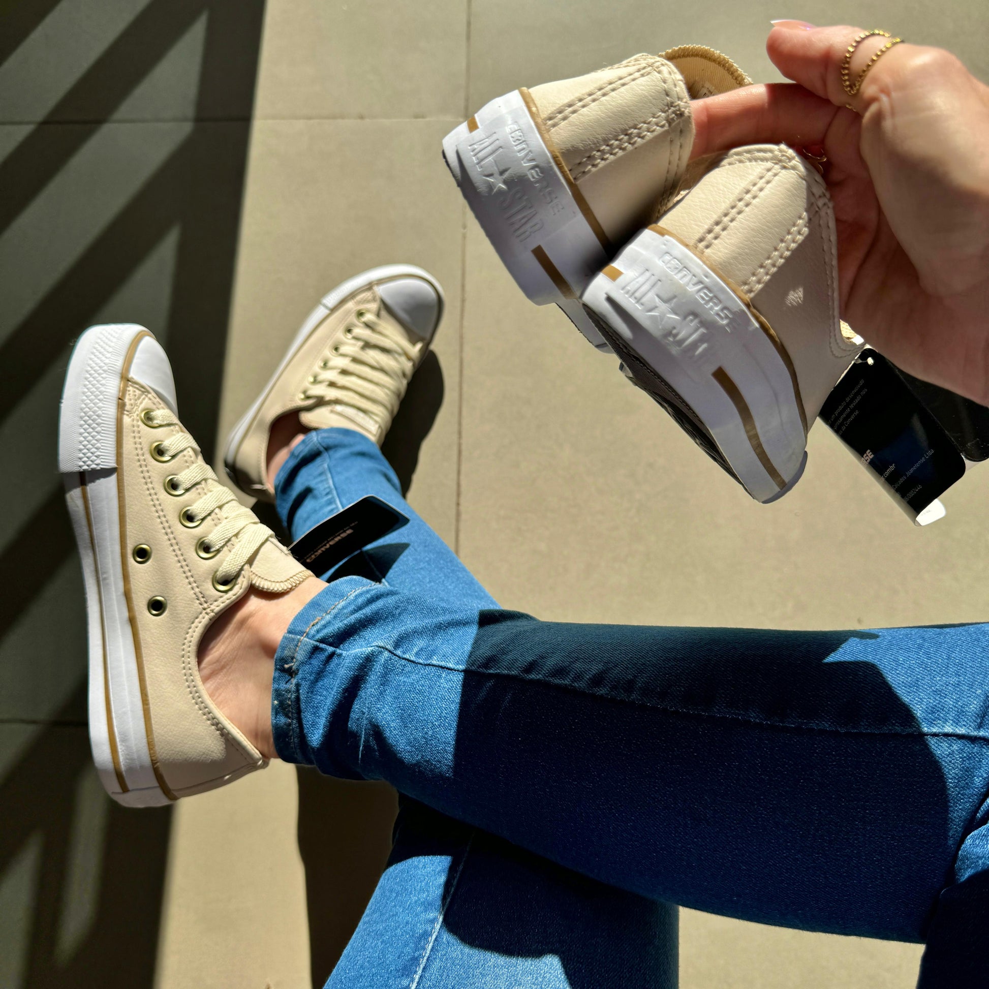 O Tênis All Star Areia Courino Premium renova o clássico design All Star com um acabamento em courino na cor areia, oferecendo uma opção elegante e versátil para quem valoriza estilo e conforto. Este modelo é perfeito para combinar com uma ampla variedade de looks, desde os mais casuais até os mais elaborados.