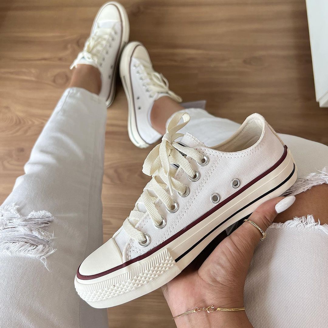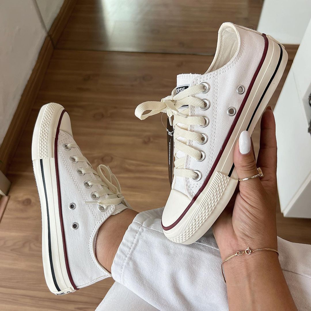O Tênis All Star Off White Vermelho Premium é confeccionado com lona de alta qualidade, complementada por detalhes em vermelho. Esses detalhes conferem um toque de elegância ao calçado, tornando-o uma escolha ideal para mulheres que buscam estilo e sofisticação.