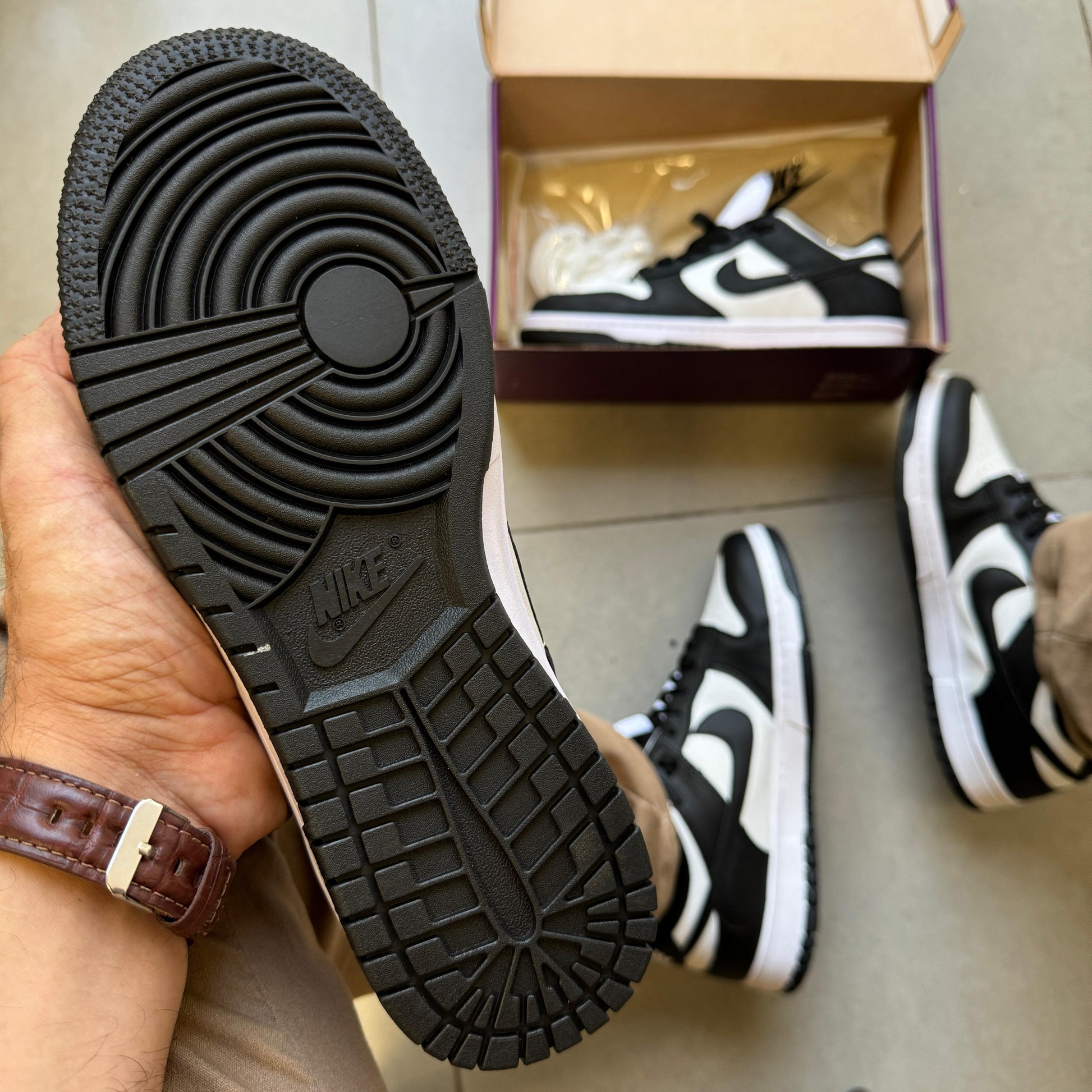 O solado em TR do Tênis Nike Dunk SB Panda Masculino Premium é conhecido por sua resistência e aderência excepcionais. Ideal para diversas atividades, o solado oferece estabilidade e conforto, permitindo um desempenho superior em diferentes superfícies.