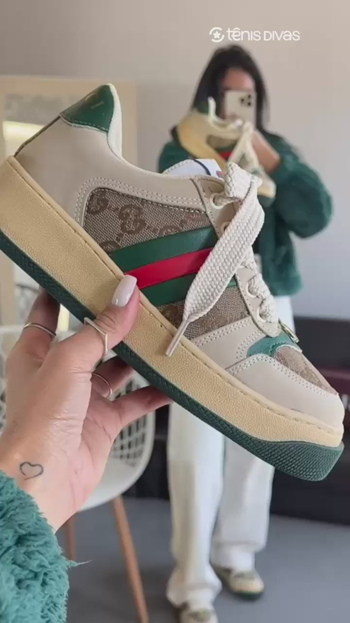 Tênis Gucci Screener Verde e Vermelho Plataforma Premium