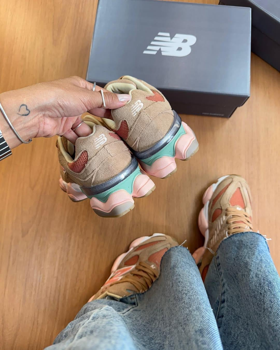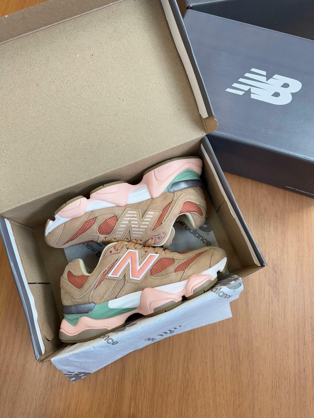 Descubra o Tênis New Balance 9060 Sea Salt Colorway, uma verdadeira obra-prima em estilo e conforto. Feito com malha, camurça e couro 100% legítimo, este tênis oferece uma experiência única para o seu dia-a-dia . A versão colorway deste modelo apresenta uma paleta de cores vibrantes, incluindo tons de marrom, laranja, rosa, branco e verde militar.