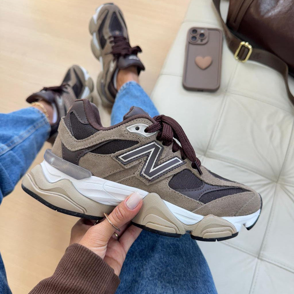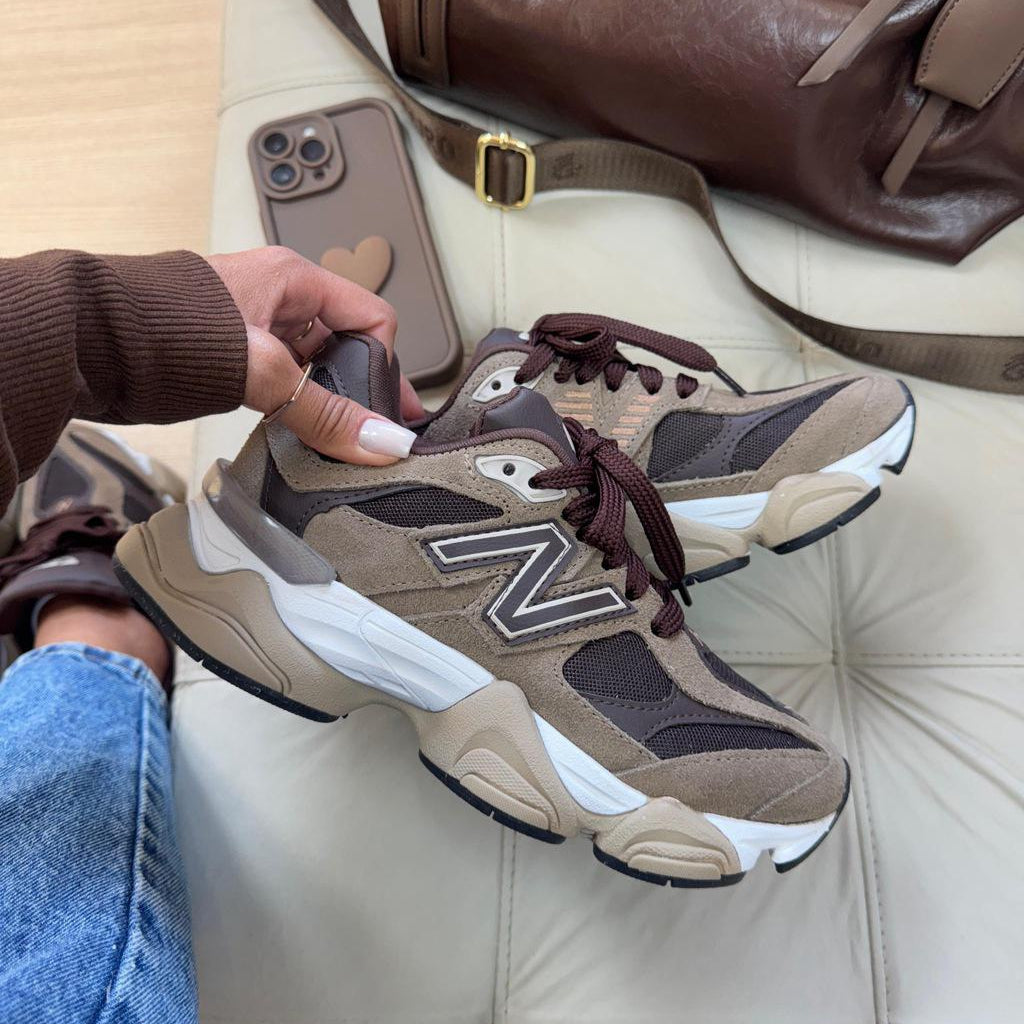 Tênis New Balance 9060 Sea Salt Marrom Feminino Couro Legítimo