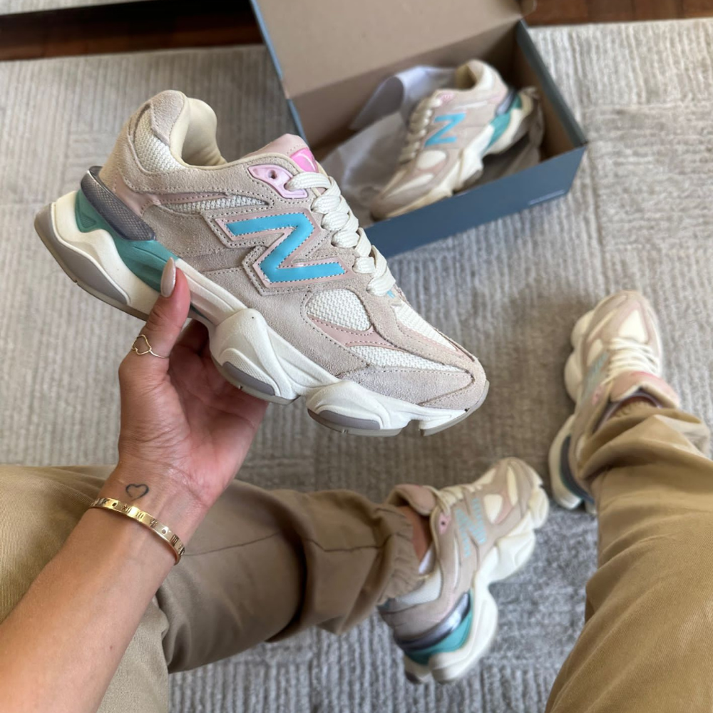 Tênis New Balance 9060 Sea Salt Nude Azul Couro Legítimo