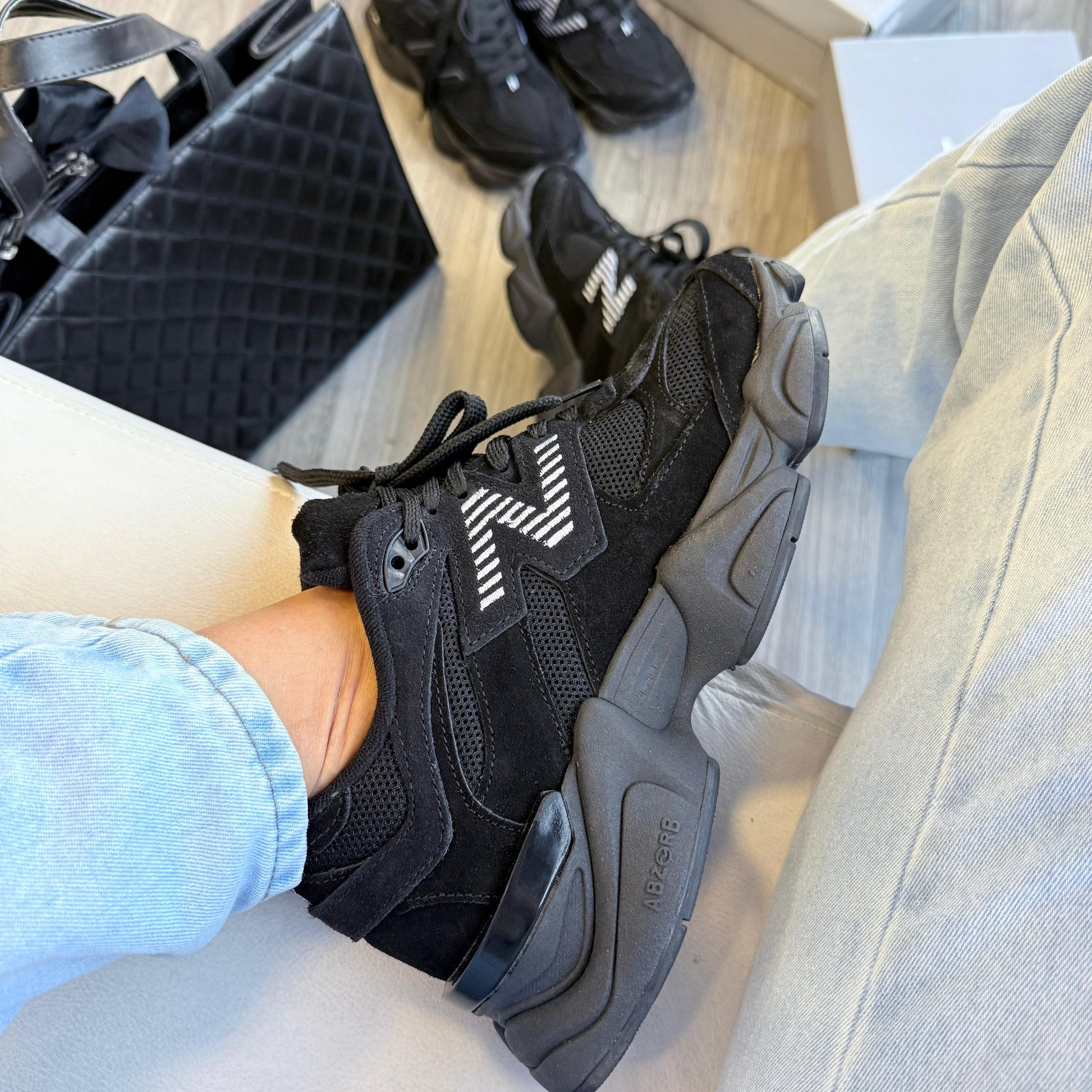 Tênis New Balance 9060 Sea Salt Preto Feminino Couro Legítimo