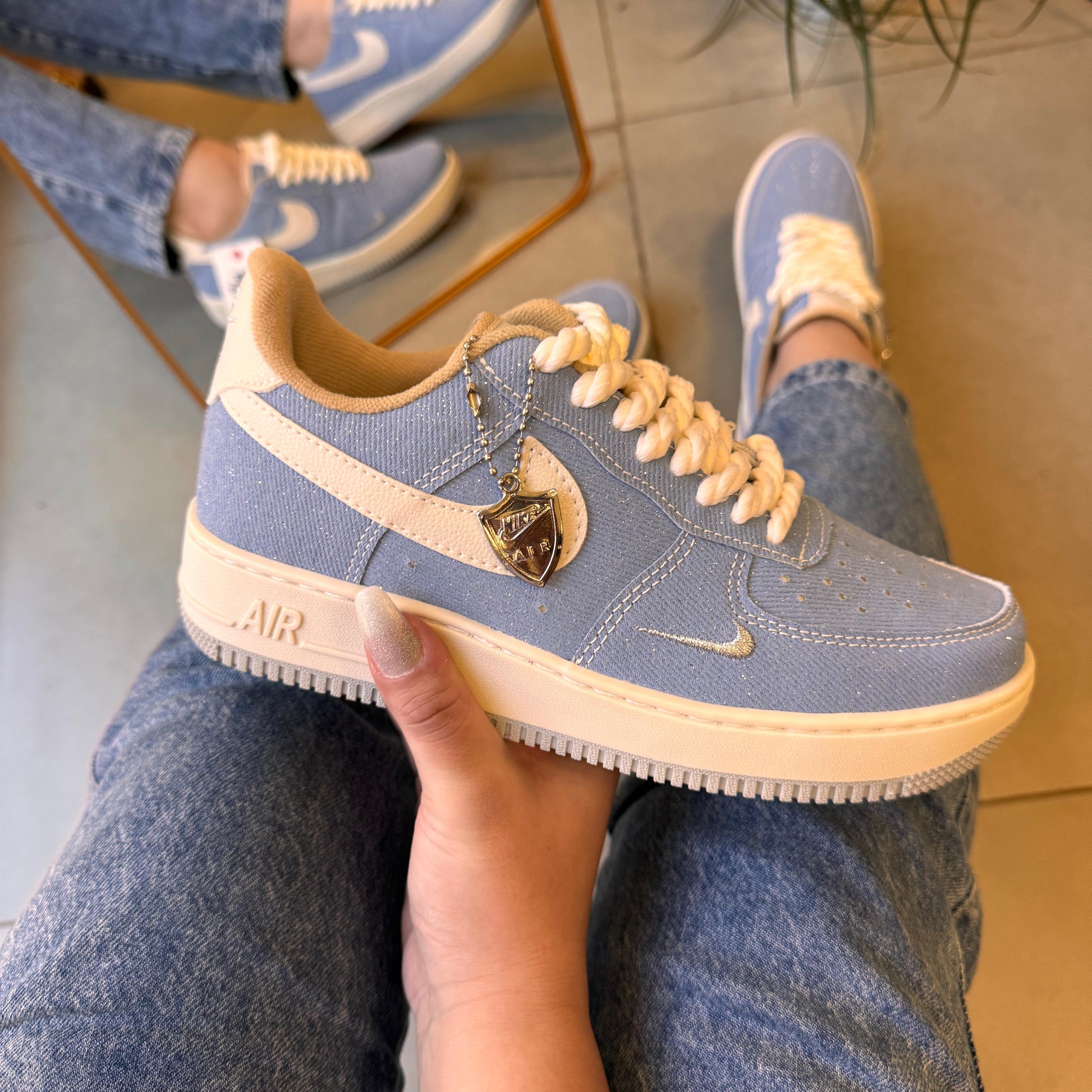 Tênis Nike Air Force Azul Jeans Pingente 2.0 Premium