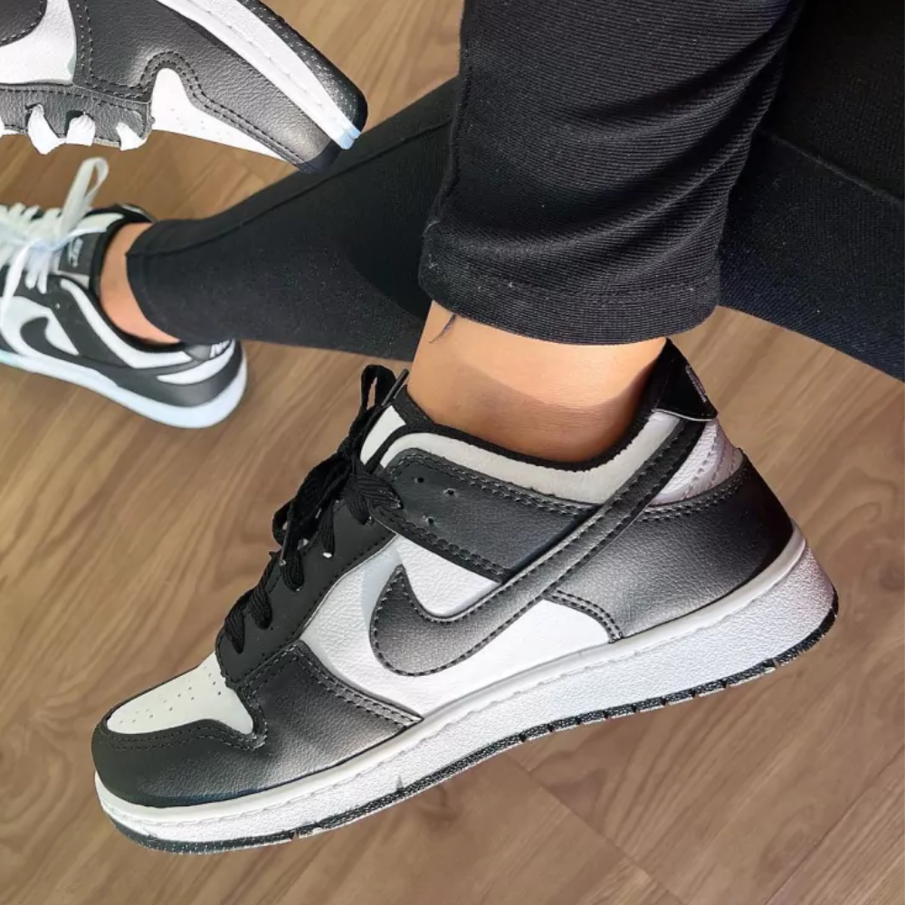 - O Tênis Nike Dunk Preto e Branco Feminino e Masculino Premium apresenta um design arrojado e atemporal que se destaca em qualquer ambiente. Com sua combinação de cores preto e branco contrastantes, este tênis proporciona um visual marcante e elegante. Seja em uma ocasião casual ou mais formal, este calçado adiciona um toque de estilo único e audacioso ao seu visual.