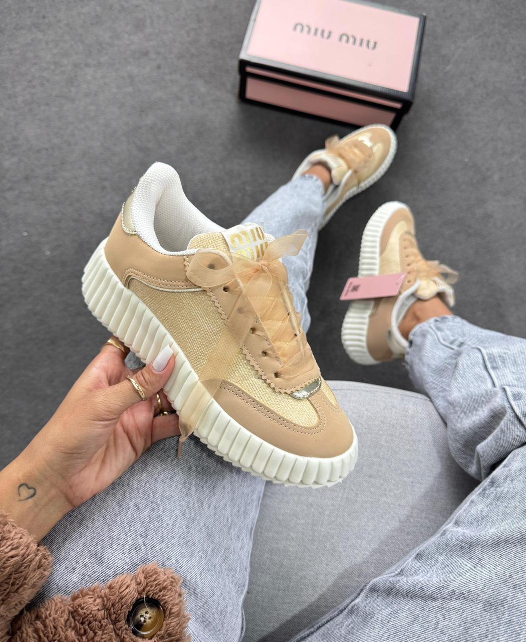 Tênis Quenz Miu Miu Bege Premium